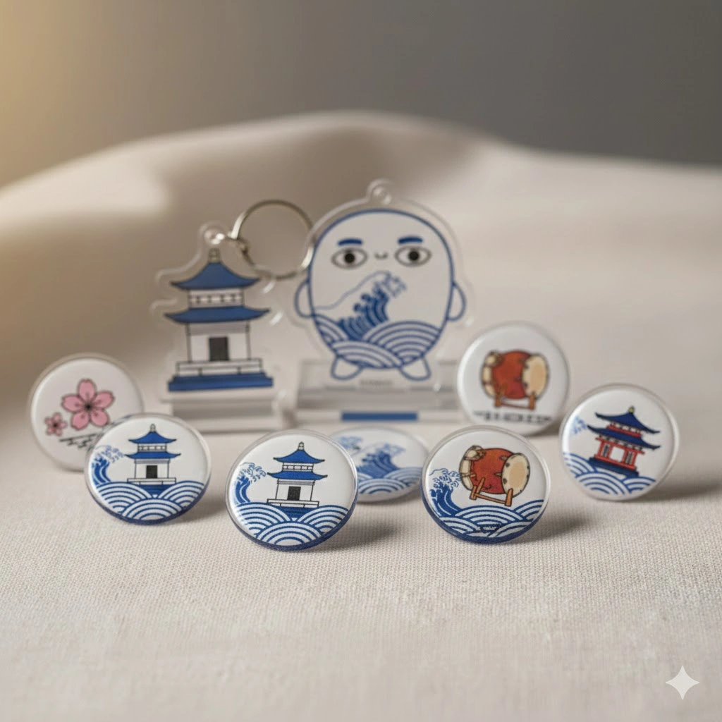 아크릴 소재를 활용한 키링, 스탠드, 소형 판촉 굿즈 제작이 가능합니다.